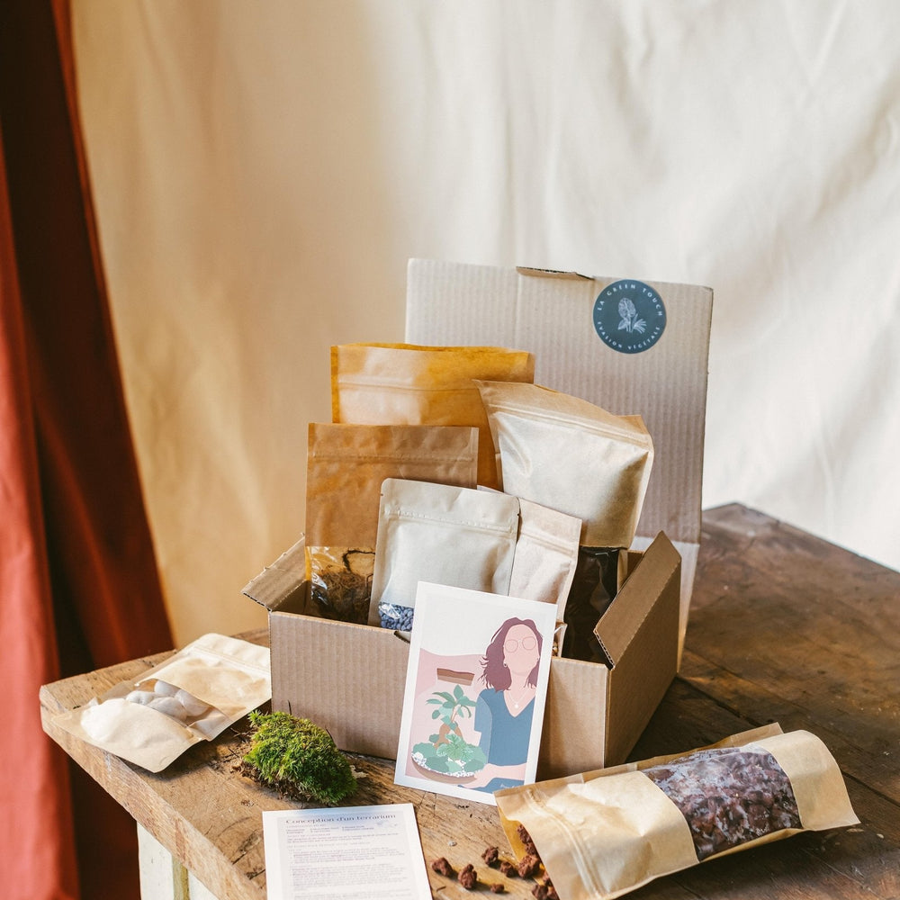 Dans chacune de ces box vous trouverez des mini plantes, du charbon actif, du terreau, des billes d'argile, un guide de conception étape par étape et un guide d'entretien.