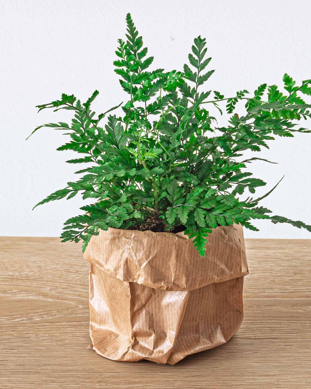 Nous avons développé un emballage spécifique en plastique recyclé qui s'adapte à chaque plante, terrarium, cache-pot ou kokedama. Forts de notre expérience en logistique et packaging, nous vous garantissons une réception sans encombre, comme si vous étiez venue la chercher à notre atelier.