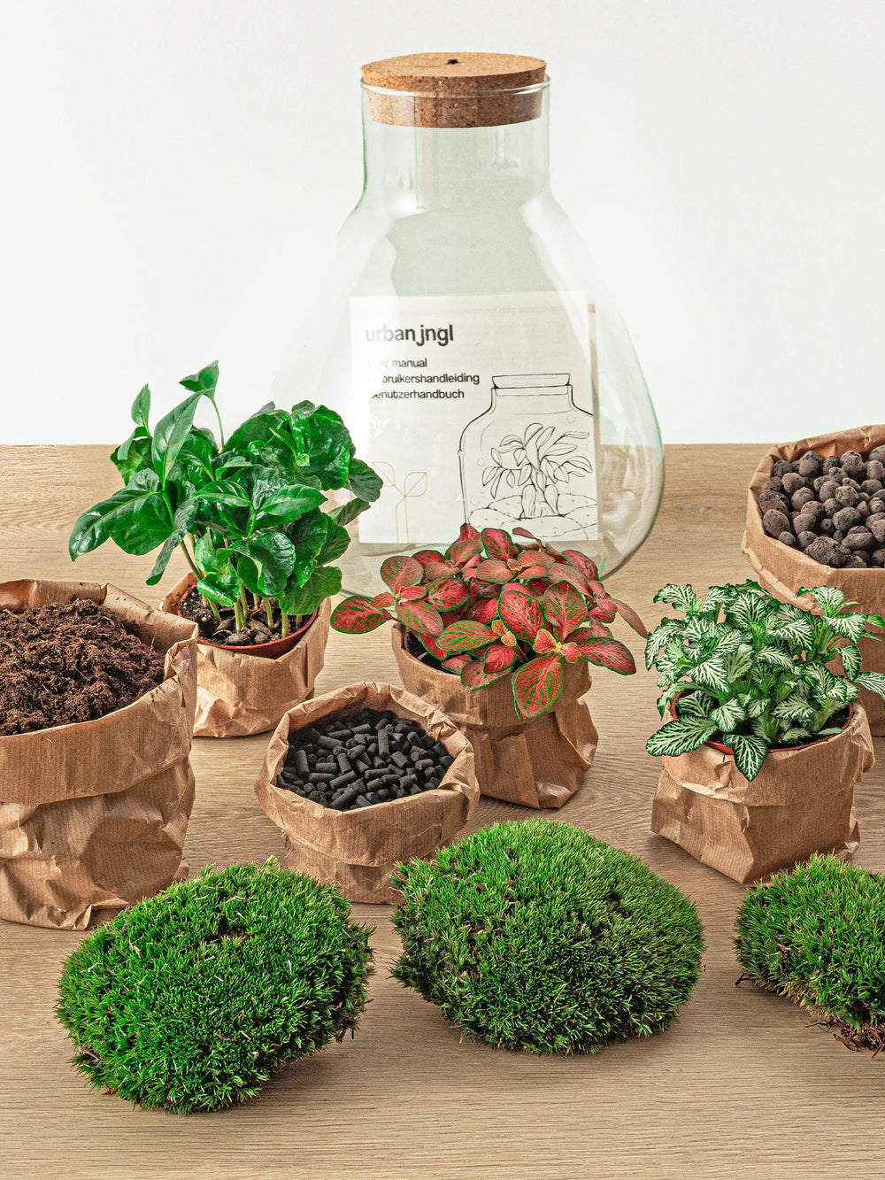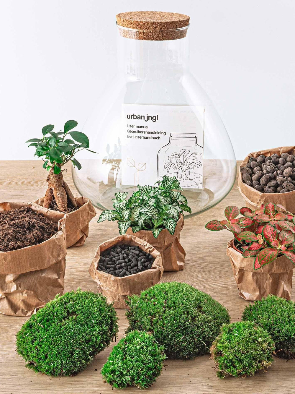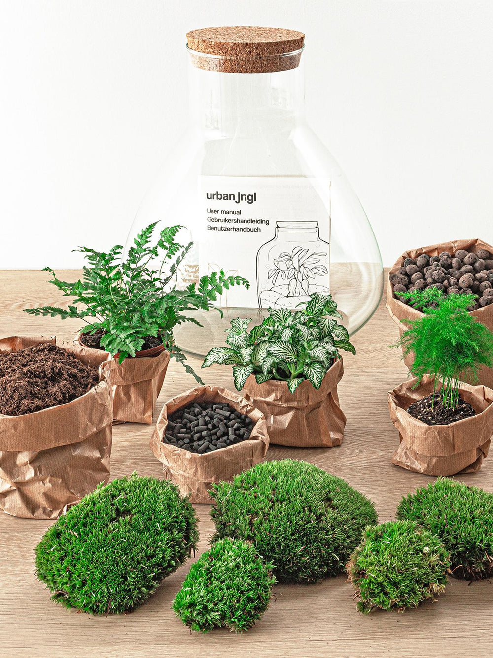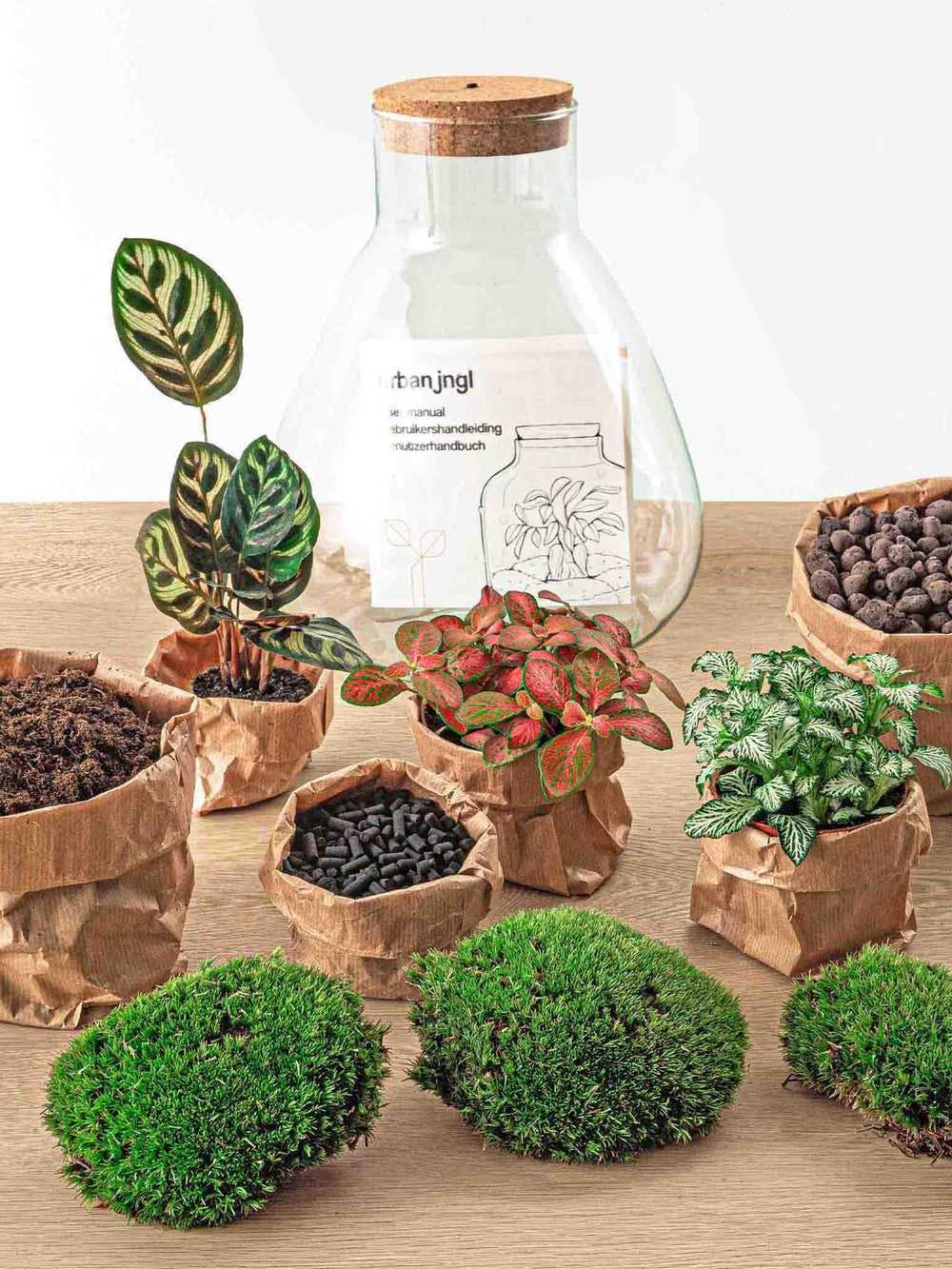 Jedes Set besteht aus allem, was zum Bau eines Terrariums erforderlich ist: einem quasi autonomen und autarken Miniaturgarten. Ideal, wenn Sie keinen grünen Daumen haben!