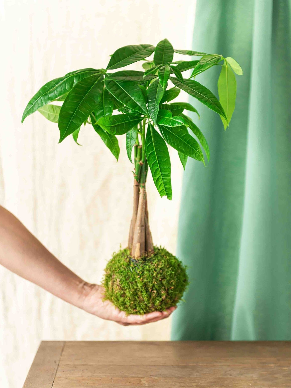 „Koke“ tauchte in den 1990er-Jahren in Japan auf und bedeutet „Moos“ und „dama“ eine Kugel, eine Kugel, aber auch etwas Kostbares. Es besteht aus einer mit nährstoffreichem Tonsubstrat gefüllten Mooskugel, auf der eine hübsche Pachira-Pflanze ruht.