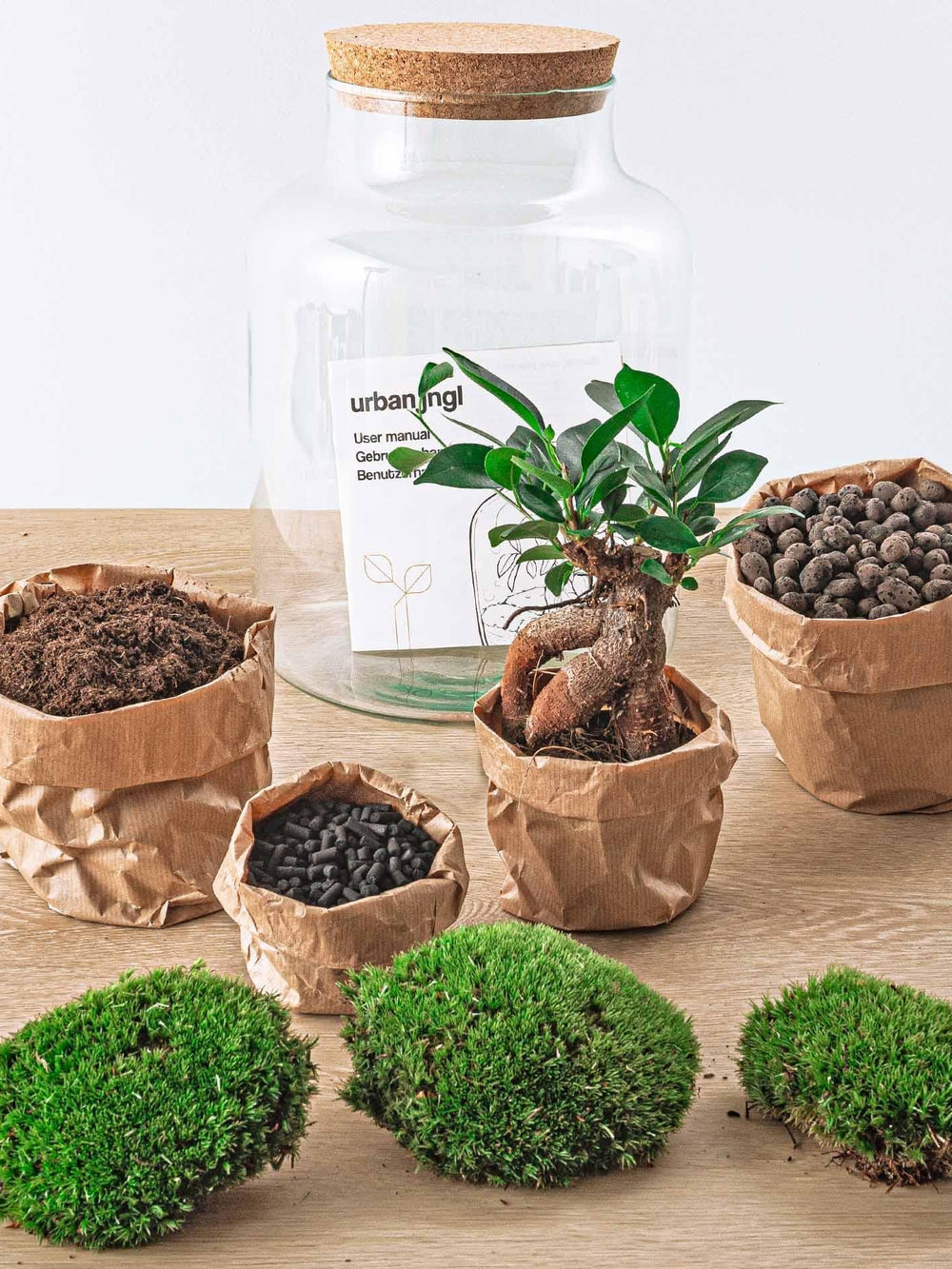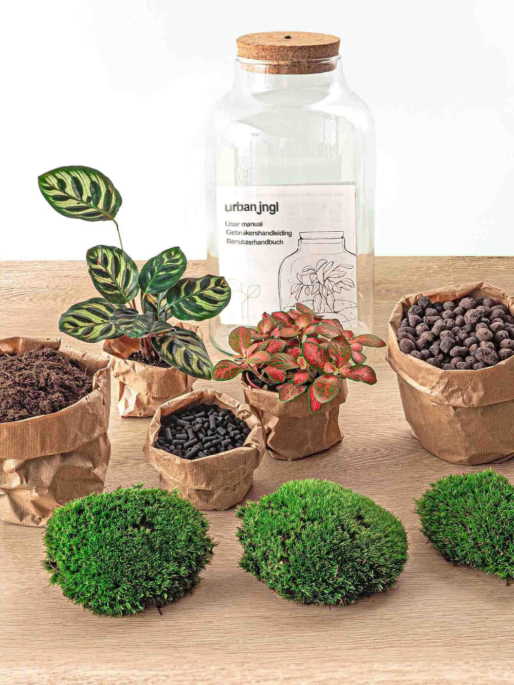 Elke kit bestaat uit alles wat nodig is om een terrarium te maken: een quasi-autonome en zelfvoorzienende miniatuurtuin. Ideaal als je geen groene vingers hebt!
