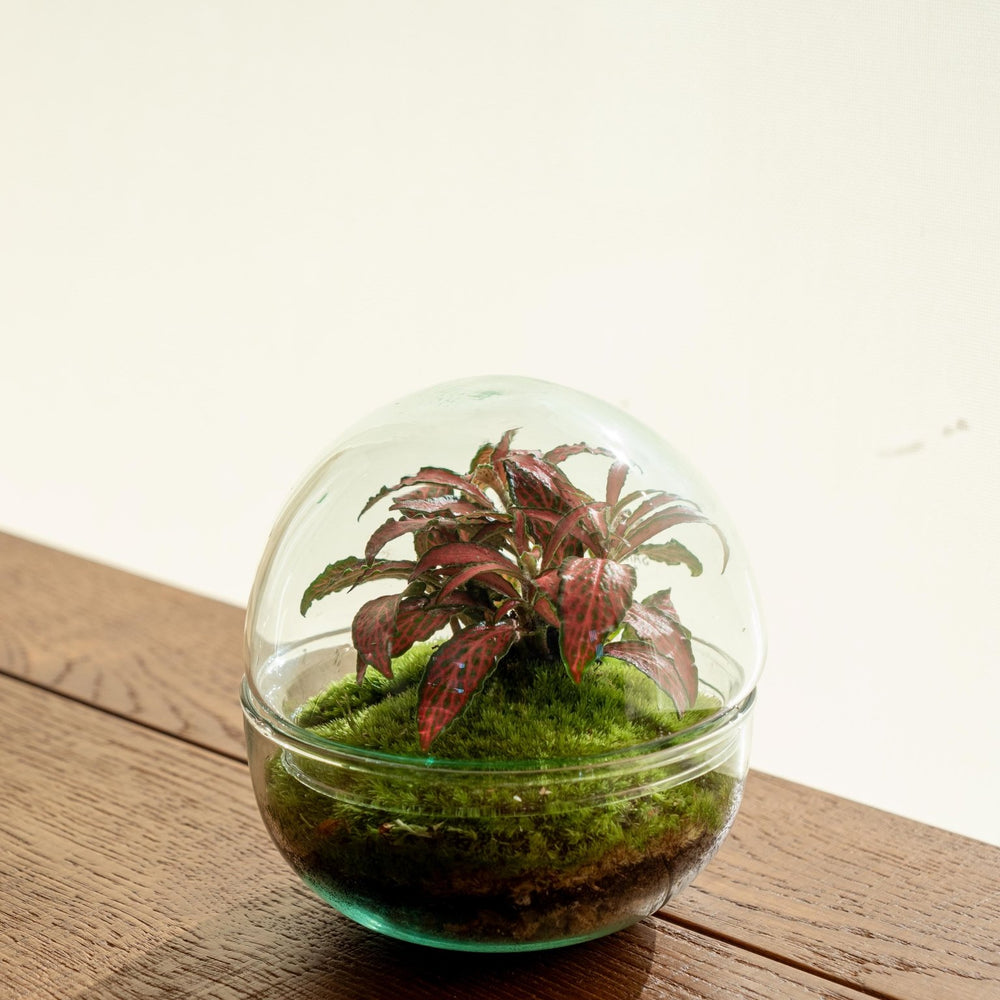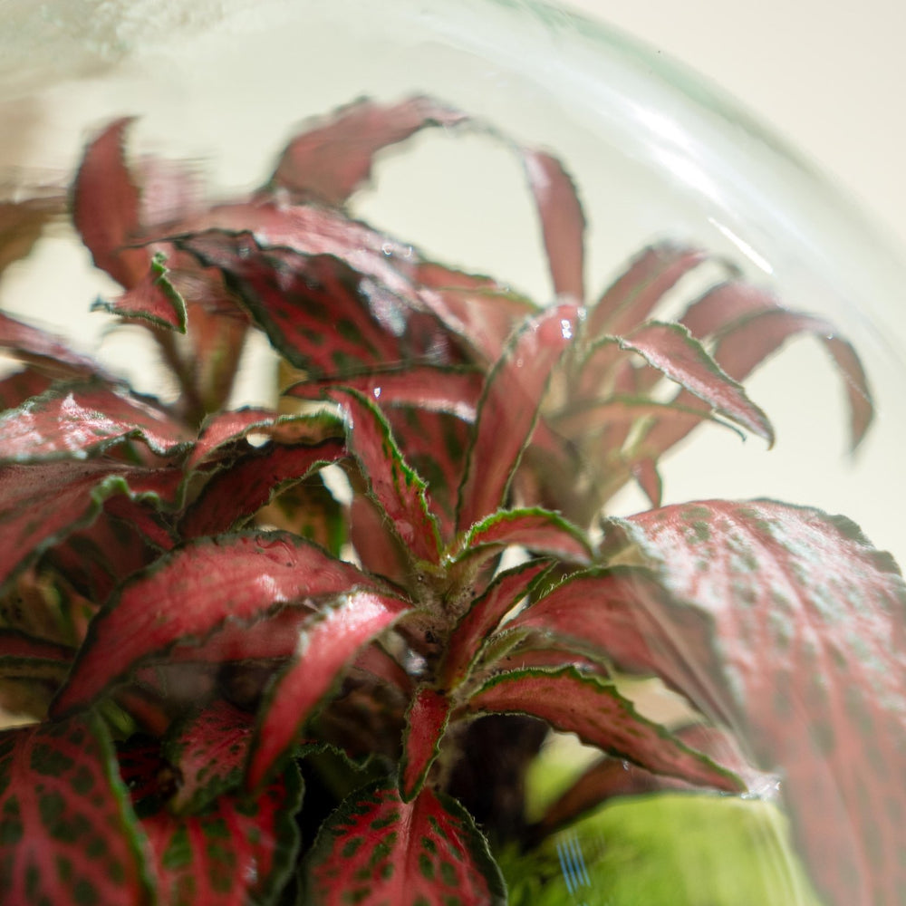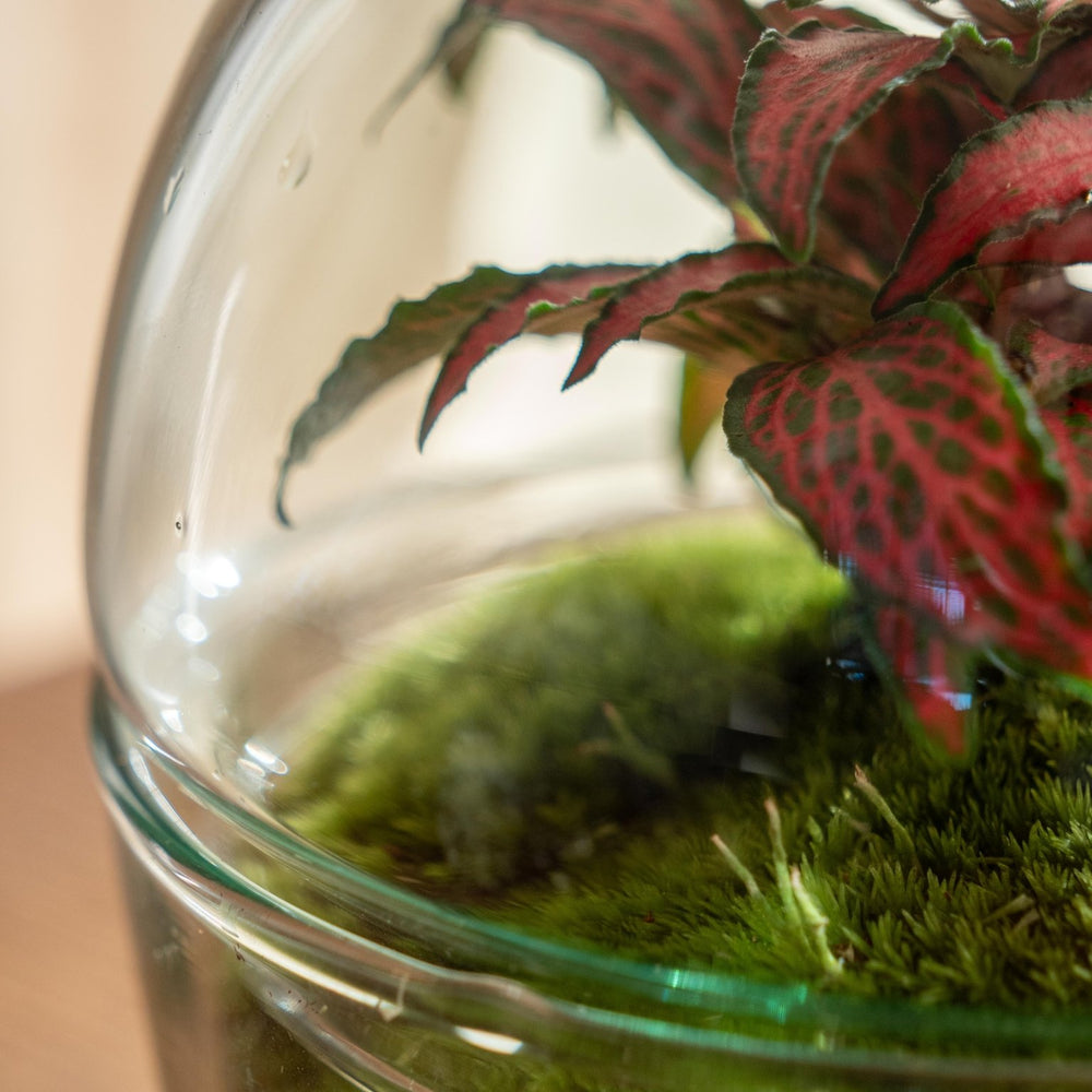 Het Bohol Fittonia terrarium is ideaal om op een tafeltje, ladekast, in een bibliotheek of op een bureau te plaatsen.