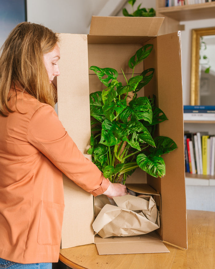 Levering van mijn plantThuisbezorging van kamerplanten maakt deel uit van onze expertise, wees gerust! Elke plant wordt zorgvuldig verpakt in een geschikte verpakking afhankelijk van de grootte of het aantal producten.